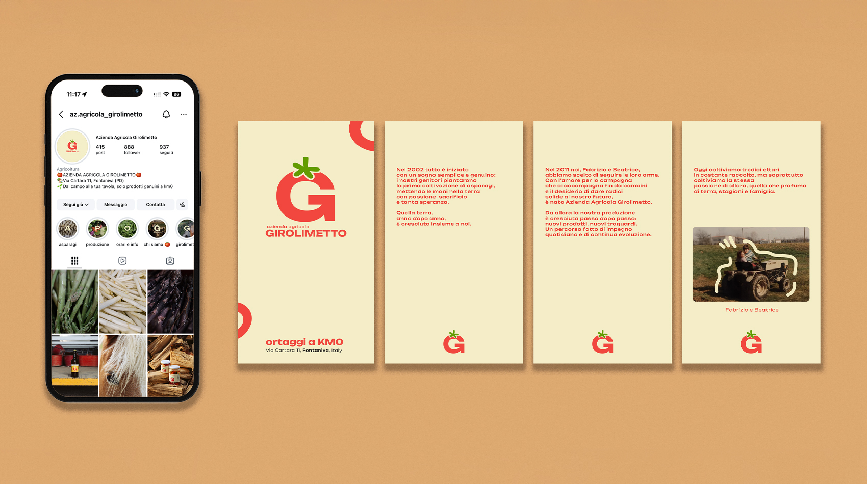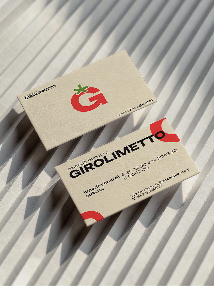 Il progetto si è sviluppato attorno a un elemento chiave: il pittogramma. L’obiettivo è stato quello di rendere immediatamente memorabile il pomodoro a forma di “G”, trasformandolo in un segno distintivo e sinonimo dell’azienda agricola.