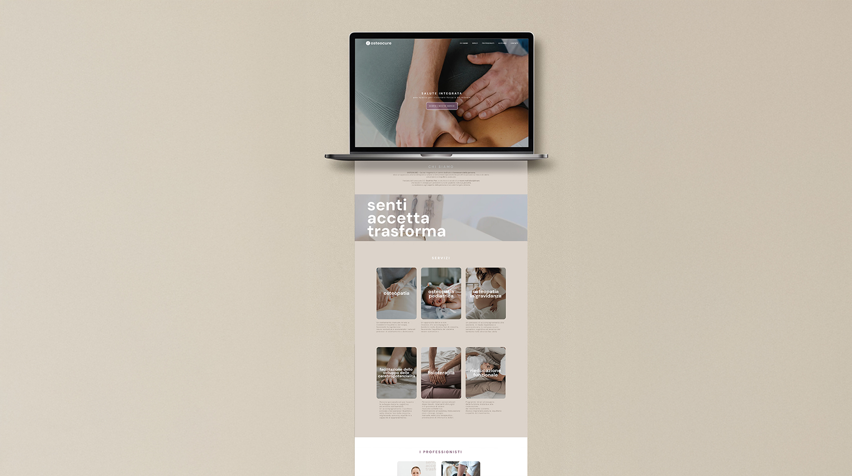 L’identità di Beatrice e del suo studio è stata il punto di partenza: abbiamo valorizzato i toni e il carattere accogliente e raffinato del wayfinding, estendendoli al sito web per garantire un’esperienza coerente e riconoscibile su tutti i touchpoint.